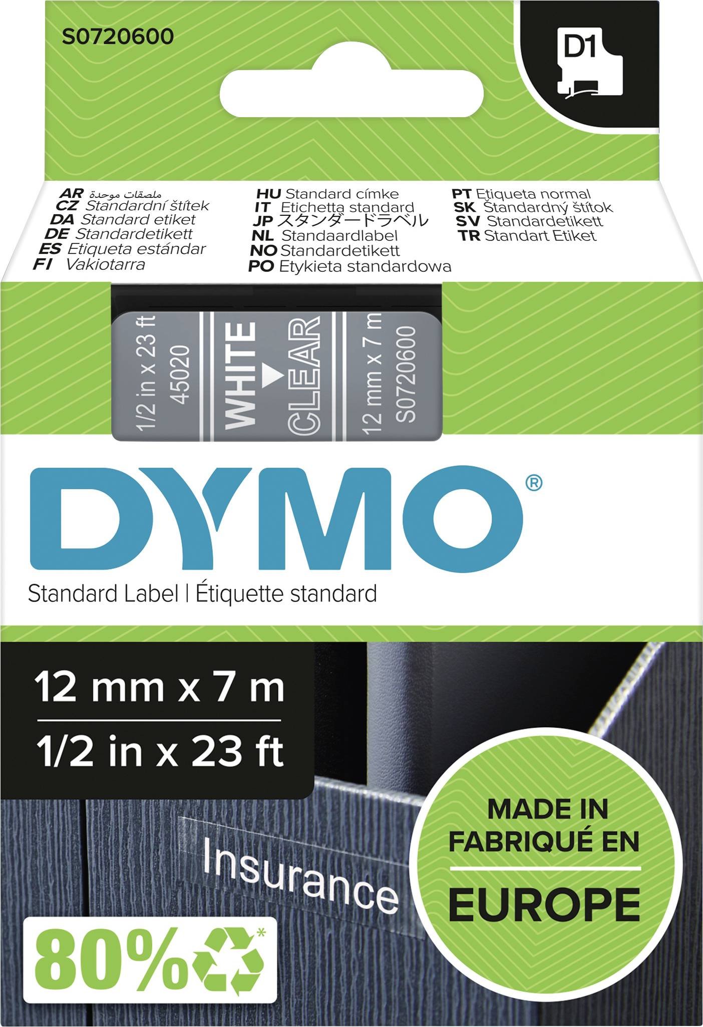45020 Dymo Tape 12 x 7mm White/Clear