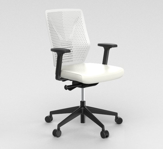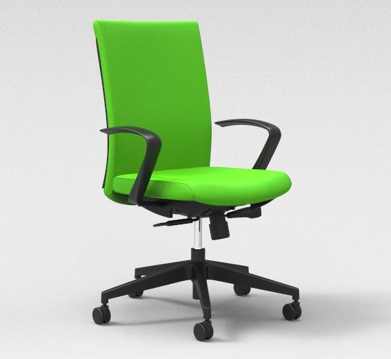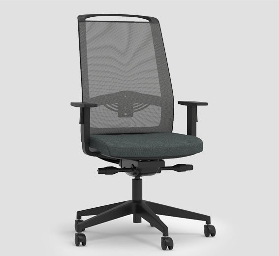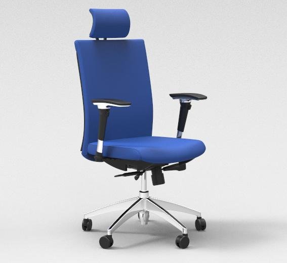 Upholstered chair with multiple possibilities. Includes swivel headrest, adjustable arms and traslo (sliding) seat adjustment.