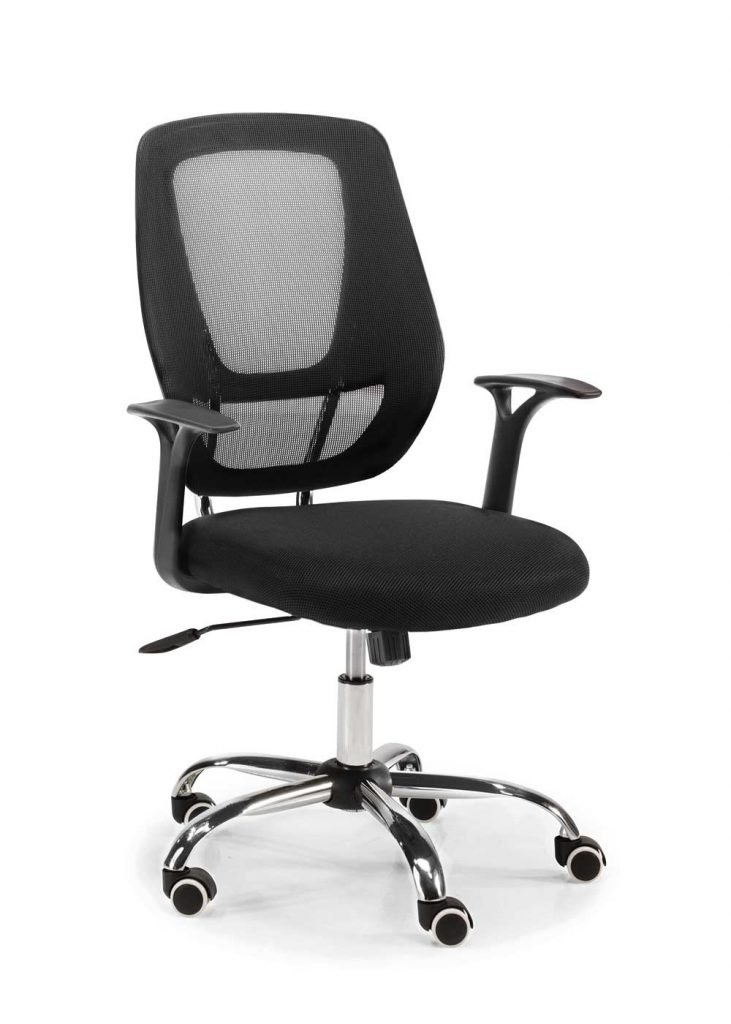 High backrest in breathable mesh, tilting and with chromed steel base.