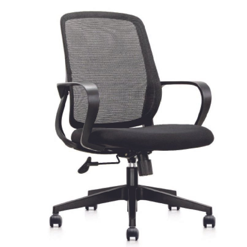 Curved mesh back High density foam seat Tilt mechanism Fixed arms Supports up to 120kg (Chair pictured is light grey)