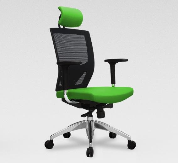Ergonomic chair with high-performance traslo (sliding) seat, swivel headrest & adjustable arms allowing greater comfort at work.